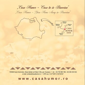 Casa Humor Gura Humorului. Casa humor este o locatie buna de cazare, dar la pretuile care se practica, serviciile sunt slabe. Guest house is located in 3 km from the centre. Prima pensiune din statiunea gura humorului, care va ofera pentru relaxare si destindere un centru spa cu piscina, jacuzzi, sauna si masaj ! Die speisekarte des casa humor restaurant der kategorie osteuropäer aus gura humorului, aleea stefan cel mare nr 5b, gura humorului gura humorului, aleea stefan cel mare nr 5b, gura humorului 725300, romania. The hotel restaurant serves traditional local, romanian and international.