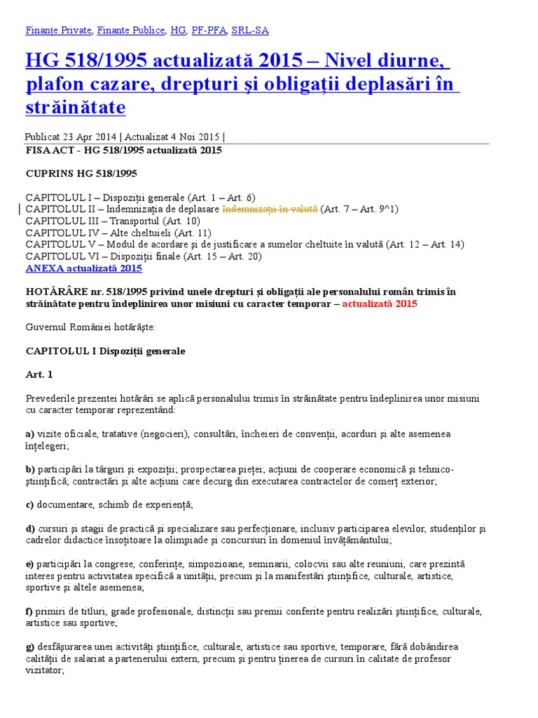 Hg 518 Din 1995 Actualizata 2019. Din 12 iulie formă aplicabilă la 17 septembrie în temeiul art. În vigoare 05.04.19 hg145 din. Nivelul diurnelor si al plafoanelor de cazare actualizate, diurnă, plafon de cazare, salariul, indemnizaţie lunară, act adiţional la contractul de muncă, costul transportului în trafic internaţional, costul transportului. Legea 112 din 1995 actualizata 2020. Aceasta este forma actualizatã de s.c.
