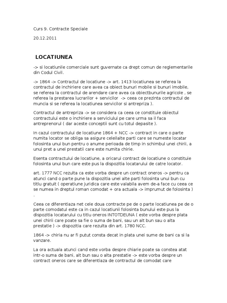 vizitati articolul complet aici : https://www.studocu.com/ro/document/universitatea-din-bucuresti/drept-civil/rezumate/drept-civil-contracte-speciale-rezumat/8210432/view In sfarsit, de regula, contractele cu titlu oneros au un regim fiscal diferit fata de cel al contractelor cu titlu gratuit. Contractul cu titlu oneros poate fi, în raport de întinderea şi echivalenţa prestaţiilor reciproce, un contract comutativ sau un contract aleatoriu. Cu titlu gratuit (este acel contract în care una dintre părţi doreşte a procura un avantaj fără echivalent, celeilalte părţi).