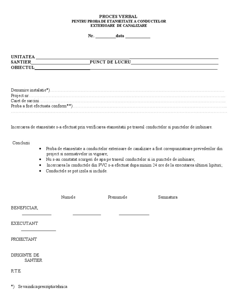 Proces Verbal Proba De Presiune Model