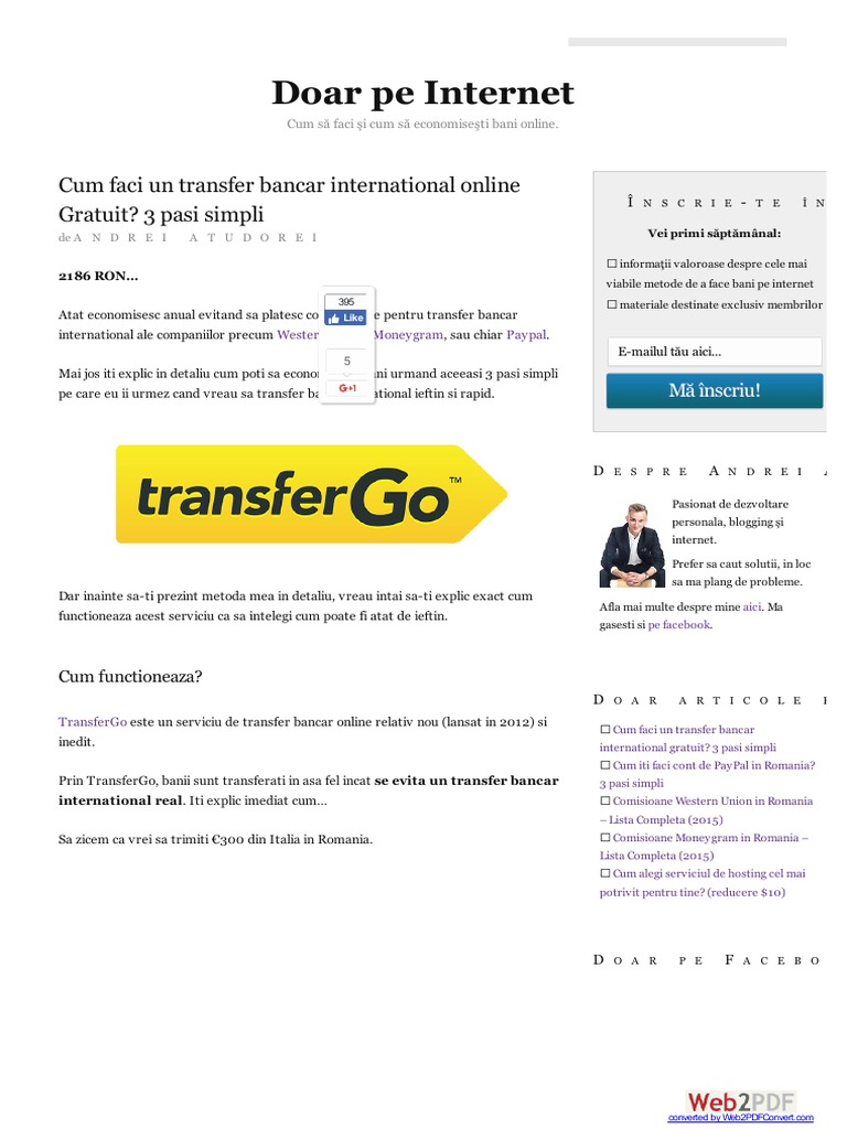 vizitati articolul complet aici : https://www.transferrapid.com/ Pagina 2 din 17 rfc102 rev. ⠀ lista comisioanelor pentru persoane fizice; In 2013 transfergo a primit licenta pentru plati si transferuri de valuta in toate tarile din spatiul economic european.